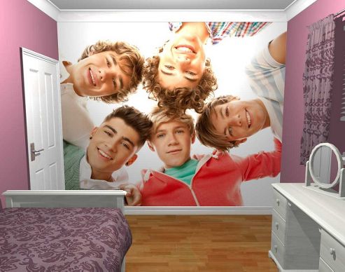 Transform your wall with this One Direction Circle wallpaper wall mural. - High quality One Direction wall murals come in 6 easy to apply pieces measuring 2.70m wide by 2.53m high in total -