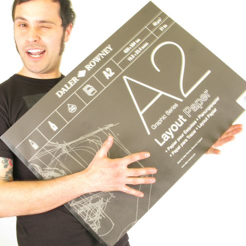 420 x 594mm, 16.5 x 23.4 inches. 80 sheets 45gsm, 31lbs. artists and designers layout pad.
