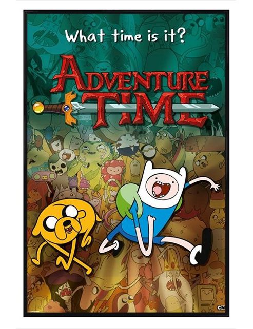 A poster of the main Adventure Time characters having a fun day out together. Complete with a 61cm x 91.5cm gloss black plastic frame, fronted with transparent Perspex and ready to hang in your home.