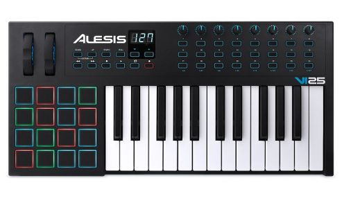The Alesis VI25 is an advanced USB/MIDI keyboard MIDI controller that lets you take command of your music software with a series of pads, knobs, and buttons. With 25 velocity-sensitive semi-weighted keys with aftertouch and Octave Up/Down buttons, you...