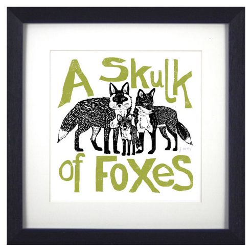 These framed prints are not only eye catching and colourful but they are fun, educational pieces too. With a charming but quirky sense of humour about them, each collective noun features an illustration of an animal by Jan Morley.This fantastic series of designs mix bold, bright words with beautiful animal illustrations. They are so appropriate for a child and make a great show on your wall too, especially when they are hung as groups - Once you have one you'll want them all! Each illustration is printed with the highest quality inks and on beautiful heavy paper, then mounted with snow white mountboard and in a placed in a stunning black frame, this not only shows off the details of the illustration but will compliment any room with ease, your little one's wall, or even in your living space, anywhere where everyone can enjoy it.