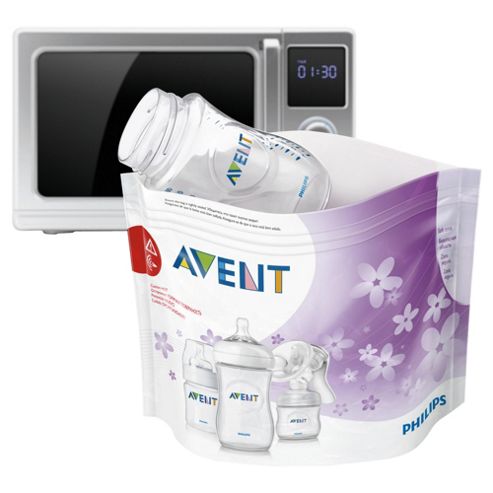 With this pack of Avent microwave steam steriliser bags you can sterilise up to 3 bottles at once or one breast pump. A sneak-peak window is included in each bag, to check whether the parts are positioned properly inside the bag for optimal sterilising....
