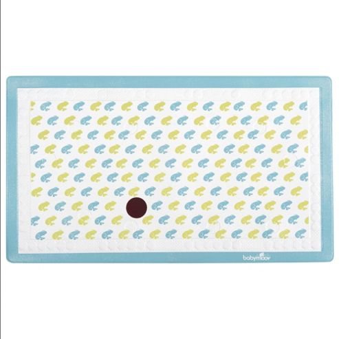 The Babymoov-- bath mat helps prevent your little baby from slipping during bath time. Thanks to more than 100 suction cups, this anti-slip bath mat is very stable. A red round spot will show when the temperature of the water is too hot for baby (more than 37--).The universal bath mat is the ideal size to use on any bottom of a bath or shower (70 X 40 cm). It is easy to clean and is suitable to use from birth. Finished in a two-tone frog print design, the bath mat will add a bit of fun to the bathroom.The Babymoov-- products are life warranted if you register online at www.service-babymoov.com. You have to register within 2 months from the date of purchase to benefit from this service.