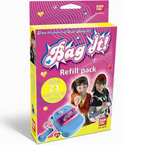 Make your own cool swinging charmsMake 21 more charms with this refill pack designed for use with the Bag It charm maker. Age 6