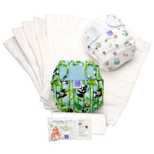 We---ve taken care of changing time! The new miosoft two-piece nappy from Bambino Mio is a versatile nappy to suit all shapes and sizes. Just two sizes of cover and a onesize nappy to see you through from birth to when they---re potty-ready. The miosoft nappy set is a great way to get started with reusable nappies and is a perfect part time solution. Pack Includes2 x miosoft nappy covers8 x miosoft nappies50 x mioliners (nappy liners)100g x miofresh (nappy cleanser)User guideWhy Buy Me?A versatile nappy to suit all shapes and sizes.As easy to use as a disposable with simple Velcro-- fastenings.Cotton through and through, nothing is softer on your baby---s delicate skin.Super absorbency and minimum bulk for little bottoms.Perfectly sized to ensure a snug, leak proof fit.Super stretchy to keep up with even the most active babies!Easy to wash and extremely quick drying.