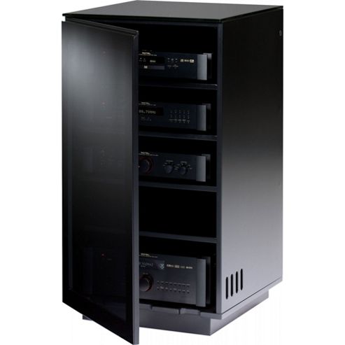 The Mirage 8222 BL AV Tower is an attractive addition when used with the Mirage cabinet or on its own. A reversible IR-friendly grey tinted glass door conceals five adjustable shelf compartments allowing the cabinet to be customized to fit components of almost any size. - Ventilation slots in the base shelves and removable back panel allow cooler air to enter from the bottom while hot air flows out of the rear of the cabinet. There is a dedicated vent in the back panel where the user can install an internal fan up to 8cm square for additional heat exhaustion (fan not supplied). - Concealed wheels allow the tower to be rolled for easy access to the back of components and integrated cable management keeps everything in order. - Delivery Note: You will be contacted to arrange a convenient date for delivery of your order - Delivered Fully Assembled - H1020mm x W560mm x D560mm - Satin Black Finish - Hidden castors - Cable management - Integrated levellers - Adjustable