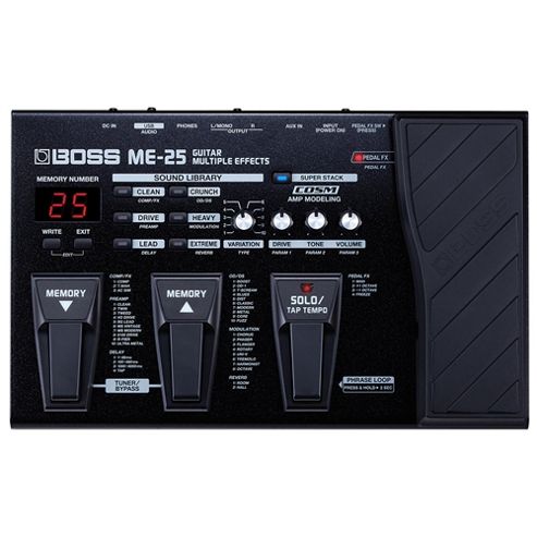 The affordable new ME-25 guitar multi effects unit is packed with powerful Boss features to make you sound like a pro yet it is as fun and easy to use as a stompbox. The built-in SOUND LIBRARY gives you instant access to dozens of classic and modern effects. Simply choose a category then select a variation and play. Customise your sound with simple twists of the Drive and Tone as well as the Volume knobs. With COSM amp models onboard plus Super Stack and Phrase Loop the ME-25 is a dream processor for guitarists who want great sound and ease of use.