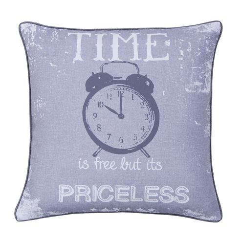 Catherine Lansfield Home Wasting Time Cushion 30x40cm. 100% Polyester Symbols: 30 degree,Do not bleach,1 dot tumble dry,1 dot iron,Do not dry clean Additional Comments:Wash before use,Wash deep colours separately,Do not bleach or dry clean,wash and tumble dry inside out,do not iron trim,Keep Away From Fire