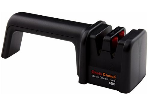Incredibly sharplightning fast, in just seconds, you can apply a durable Asian edge to your knives with this Pronto Manual Knife Sharpener from Chefs Choice. For Santoku, Ryoba and other Asian style knives. Quick, affordable and easy to use, it puts a 15 degree razor-sharp, stronger, more durable arch-shape edge on straight edge, serrated Santoku and other double bevel Asian style knives. 2 Stages: Sharpening and Honing. Stage 1 - Sharpening Using 100% diamond abrasives creates the first facets. Stage 2 - MicroHoning Micron size diamonds create the second facets for a razor sharp, durable edge. CrissCross sharpening technology for an extremely sharp, burr free edge with lots of "bite". Comfortable, soft touch handle and rubber feet for an easy and secure grip. Compact designs means that the sharpener can be conveniently stored in a drawer. Measures 21cm long, 5.5cm wide, 6.5cm high. 1 year warranty. Tested and trusted for over 25 years, the Chefs Choice-- brand is recognised as the industry leader in the manufacturing, marketing and distribution of knife sharpening products. Made in USA. For domestic use only. Not sure which knife sharpener to buy? Please contact us for our handy guide