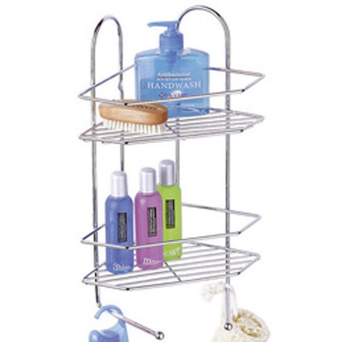 This handy wall mounted storage caddy is ideal for any size of bathroom. It comprises two roomy storage shelves and two large hooks underneath. Ideal for storing all your toiletries and shower items.Display Items not included.