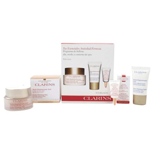 Firm, lift and tone your skin with this extra-firming day and night gift set from Clarins. This anti-wrinkle skin treatment set is suitable for all skin types, it includes a 50ml extra-firming day cream, a 10ml advanced extra-firming eye contour serum and a 5ml extra-firming night cream.