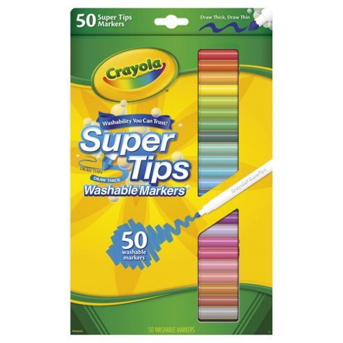 Designed to create smooth, intense colour without squeaks or drags, these Crayola 12 bright Supertips are ideal for the little details on art projects and school work. Crayola Supertips make thick or thin lines as required and the inks wash off both skin and clothing.