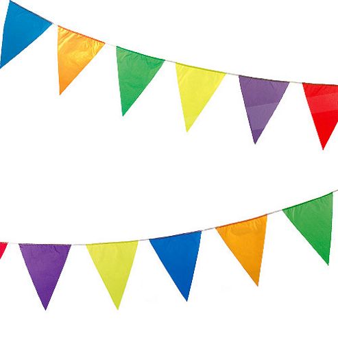 Decorate your fete, bazaar, stall etc. with our colourful bunting. 8.5 metres in length with 25 triangular flags.