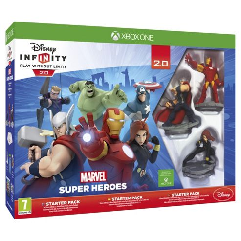 Once you place the Iron Man, Thor and Black Widow figures from the Marvel Avengers on the Disney Infinity game base, they will magically appear on your TV inside the interactive gaming platform, full of adventures. As your characters enter the game, their whole worlds will be unlocked, with lots of fun missions and activities to complete. Black Widow brings her invisibility and her stingers to the team, whilst Thor brings his cosmic hammer of thunder and his immortal strength. Iron Man has his flying armour, super strength, missiles and his uni-beam blast attack. As you begin unlocking more Disney characters, you can see the gang expand, ready to help each other. The Xbox One Disney Infinity 2.0 Marvel starter pack includes the video game disc, the game base, Black Widow, Thor and Iron Man character figures, 2 Toy Box games and a unique web code to unlock online content. Disney Infinity 2.0 characters are available to play on the PS3, PS4, Xbox 360, Xbox One--- and Wii U, It---s also compatible on the iPad, iPhone, Windows 8 devices and on the PC.