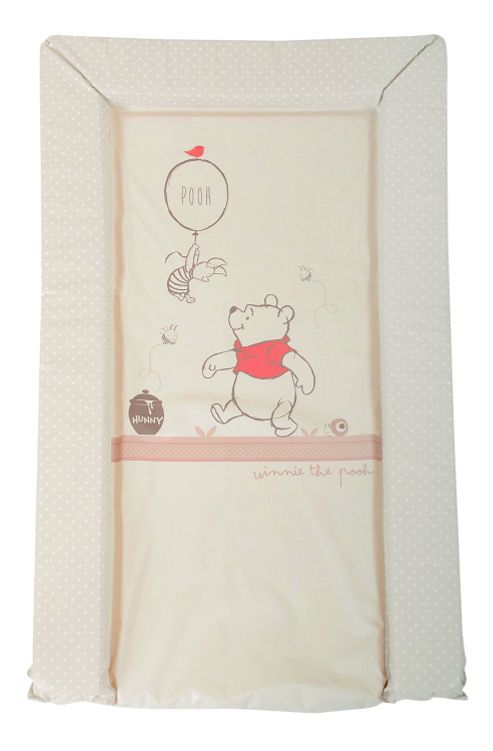 The Winnie The Pooh neutral spot changing mat from East Coast Nursery features a classic print of Winnie The Pooh and Piglet in warm, neutral tones. The mat is softly padded with foam to offer support and comfort during nappy changes. The mat is waterproof and easy to wipe clean and will fit most dressers. The size of the mat is 75 x 46 x 5cm.
