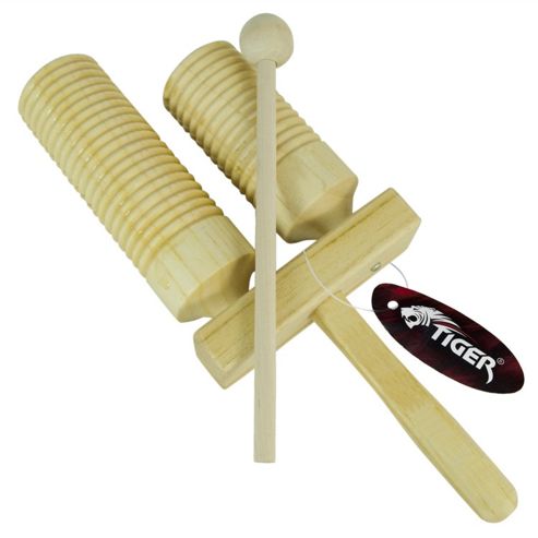 The Tiger Double Wooden Agogo Wood Block is crafted from fine cuts of wood, selected by grain suitability for the best tones, with a beater/scraper to match also provided. The beautiful wood grain is preserved by a thin, smooth, delicate coat of varnish, with the two blocks themselves producing simply superb tones, ideal for use in a wide variety of musical styles. Ideal for Schools to Recording Studios, the Double Wooden Agogo is a tremendously popular & recommended choice. Dimensions: Handle Length: 10.5cm Small Block Length: 10cm Large Block Length: 13.3cm Supporting Mount Block Width: 10cm Beater Length: 19cm