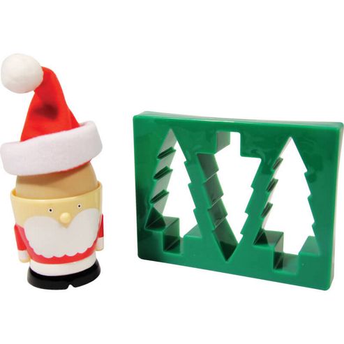Santa Egg Cup and Toast Cutter is perfect for getting in the Christmas spirit! Santas red hat will keep your boiled egg nice and warm and your Christmas Tree Toast Cutter will make perfect sized soldiers for dipping in your egg!