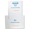 Polypropylene pocket. Ideal for storing oversize paper and printouts. Lightly embossed copy-safe material prevents text uplift. Multipunched with reinforcing strip for additional strength. 75 micron. Portrait style. Size: A5. Pack 100.