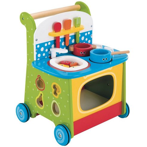 The ELC Activity Kitchen Walker is made from sturdy wood, finished with bright colours. Ideal for encouraging your little one to stand, it features a bar for them to pull themselves up, providing them with the confidence to take their first steps.