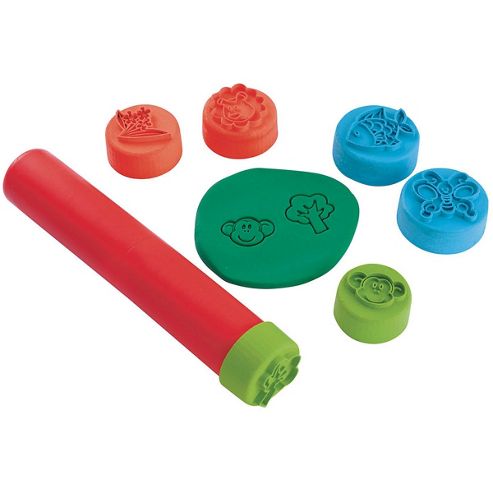 A wonderful accessory kit to accompany your Soft Stuff play dough, the rolling pin and stamp set will allow your little one to make pretty patterns and pictures in their dough. Use the roller to smooth out the edges and squish the stamps into the dough to make impressions. The stamps include a sun, moon, flower, apple and a bird.Not suitable for children under 36 months due to small parts.Quick facts:-Encourages creativity-Imprint images into your Soft Stuff dough-Includes rolling pin and 6 stamps