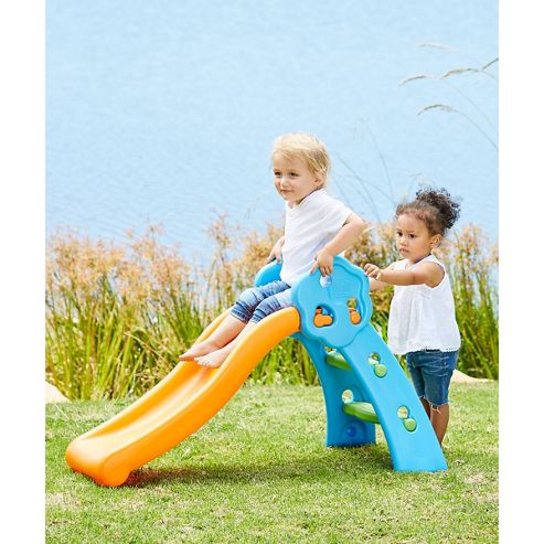 Easy to assemble, durable and safe, the My First Slide is great as a first slide for little adventurers, and is small enough for indoor use. Exciting without being scary, little ones will love whizzing down this little slide, while the large chunky hand rails give a good grip and the slip-resistant steps keep little feet steady as they climb. When not in use, the slide easily folds to be stored away for another day.Suitable from 18 months.Quick facts:-Chunky, sturdy slide-Small size for younger users-Foldable for storage