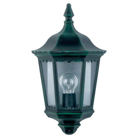 Features: One light outdoor wall lantern; Material: Aluminium; Lamp holder: ES; Cast aluminium construction; Verdigris finish; Specifications: IP Rating: 44; Accommodates: 1 x 100W GLS bulb (not included); Overall dimensions: 44.5cm H x 25.5cm W x 14cm...
