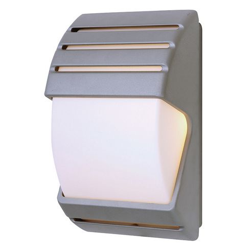 Features: One light outdoor wall bracket; Opal diffuser shade; IP44 rated; Earthed light; Dawn/dusk sensor; Suitable for mounting on flammable surfaces; Die-cast metal construction; Silver finish; Specifications: Lamp holder: 2D; Projection: 8.3 cm; Accommodates...