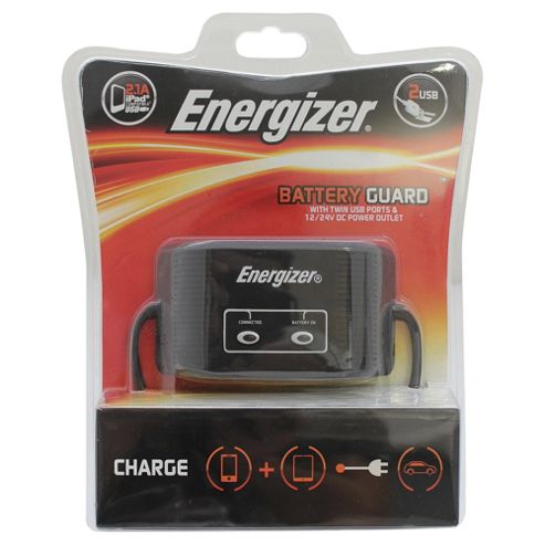 The Energizer-- 12V car socket is perfect for charging whilst in transit. The twin adaptor can charge up to 2 devices at once, such as smart phones, satellite navigation systems, tyre inflators and more. The battery guard cuts-off the charging system if its voltage drops below 11.5V. The top USB port operates a 2.1 amps and the lower at 1.0 amps of power.