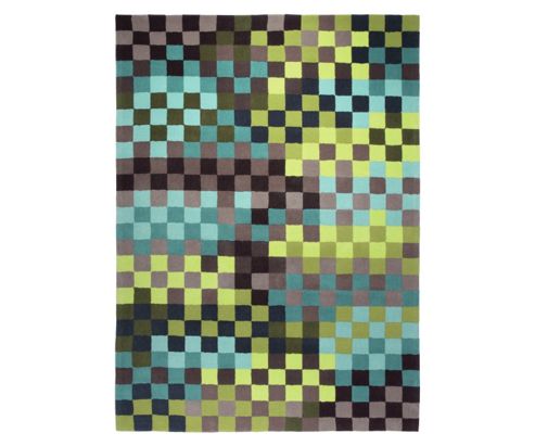 Features: Technique: Tufted; Material: 100 pct Synthetic arcylique; Construction: Handmade; Primarily green coloured rug with blue, taupe and brown accents; Pile height: 1cm;