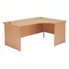 Straightforward furniture for straightforward businesses. Left hand panel end, crescent workstation with modesty panels and cable management ports. Dimensions: W1600 x W600 x D1200 x D800 x H730mm. Top thickness: 25mm. Finish: Maple.