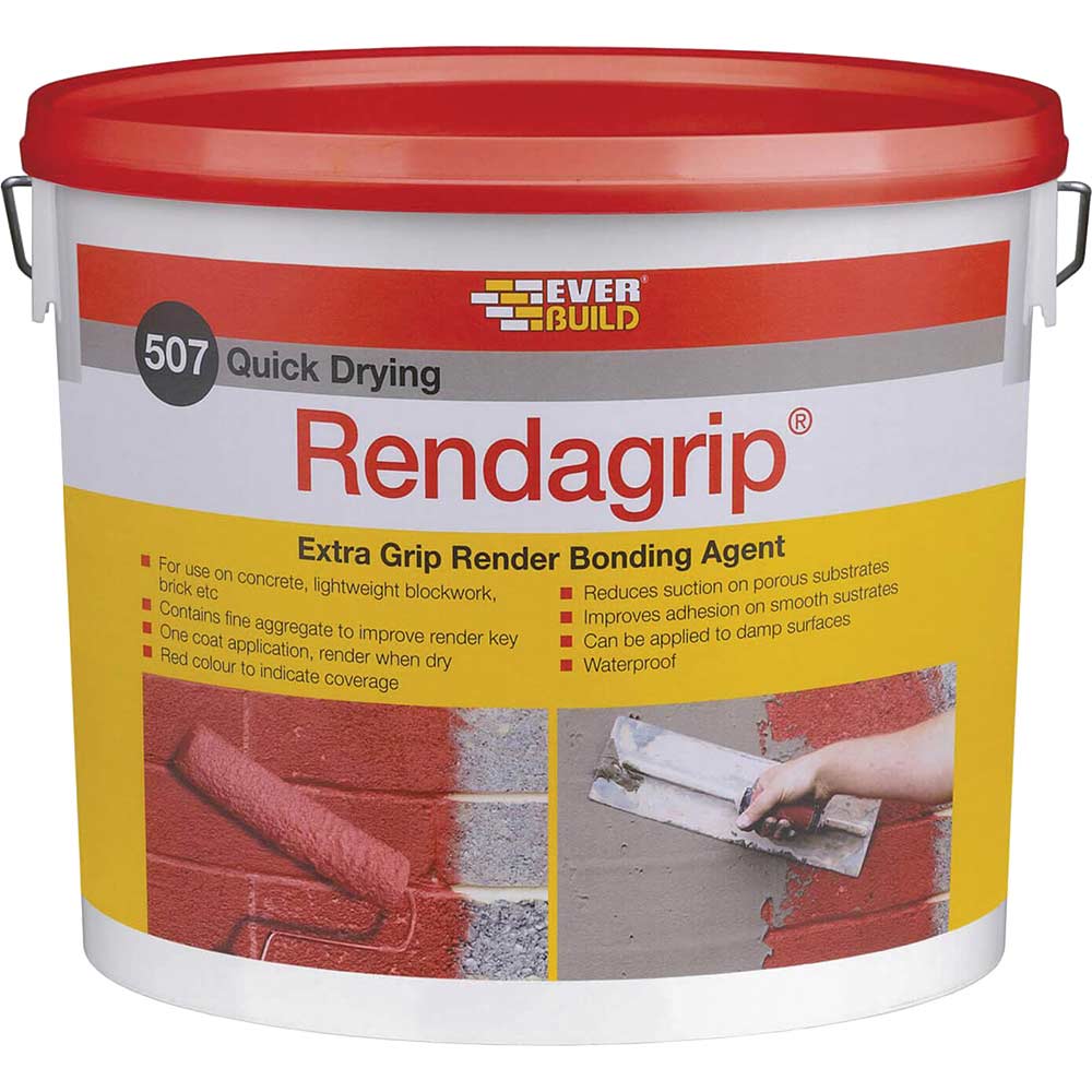 Everbuild 507 Rendagrip is an extra grip render bonding agent that contains a fine aggregate to provide an improved key before applying render on external surfaces e.g. concrete, lightweight blockwork, brick etc. The fine aggregates are suspended ...