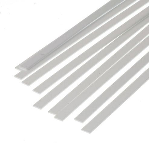 10 Strips. HO Scale 1x10. White. 0.011 x 0.112". Evergreen styrene plastic shapes, strips, tube and sheet materials in metric and inch sizes. You can build clean, accurate models.