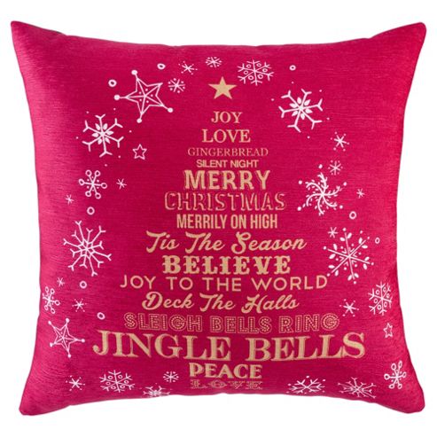 Make your home nice and Christmassy with this vibrant red and green cushion featuring a list of festive words in the shape of a Christmas tree. Designed, printed and manufactured in the UK, the cushion has a chenille front, 100% cotton reverse and is filled with a luxurious polyester fibre pad. Dry clean only. L43xW43cm.