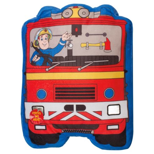 Shaped just like Sam's fire engine, this Fireman Sam cushion features the brave character on the front and a bright blue reverse. Officially licensed, the polyester cushion not only provides a comfortable support for relaxing but can also be used as a fun playtime accessory.Wipe clean. H40xW31cm. Co-ordinating bedding and accessories available.