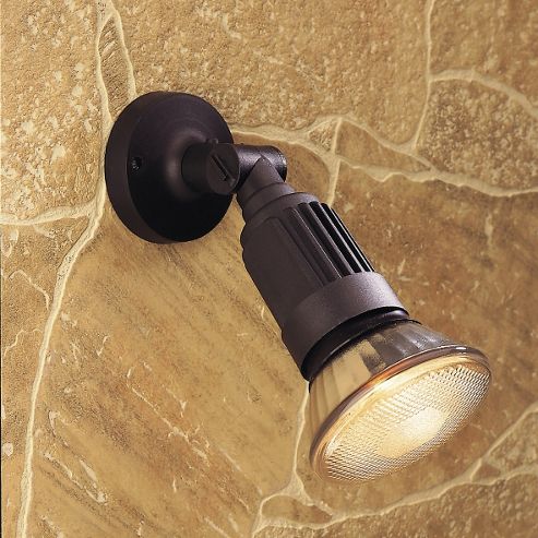 Features: One light outdoor wall spotlight; Black finish; Specifications: IP Rating: 54; Accommodates: 1x120W E27 PAR38 bulb (not included); Overall dimensions: 20cm Ext;