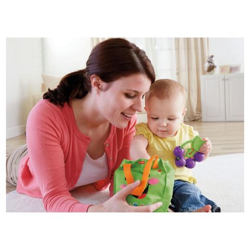 Part of the Fisher-Price Laugh & Learn range, the Sing 'n Learning Shopping Tote provides hours of imaginative fun for your little one. This colourful activity toy teaches children about colours, counting, food, manners and more. It comes with 4 role-play food pieces, including clacker vegetables, toggle eggs and grape slider beads. There's also an apple button on the bottom of the tote which rewards baby with learning songs and phrases about colours and counting. Batteries included.