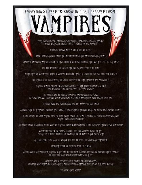 A 61x91.5cm gloss black framed poster featuring vampire knowledge.