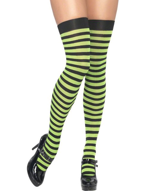 One pair of stripy thigh-high Green & Black Stockings. A perfect accessory for completing your costume.