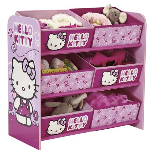 Tidying up will be a pleasure rather than a chore for Hello Kitty fans with this this cute 6 bin storage unit.Perfect for keeping clothes, toys and books neatly stored away in their bedroom or playroom, this storage unit has a strong MDF frame with painted Hello Kitty graphics and 6 printed fabric storage drawers.