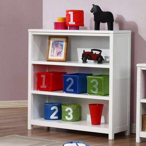 Need some extra space? This Hickory bookcase helps you make the most of your space. At just over a metre in length and a metre in height, this bookcase helps store those revision books, board games, or anything else which helps your child keep their room tidy. Plus with 3 strong and sturdy shelves there is plenty of space to keep things neatly organised. Styled to look at home in any child's room, the Hickory bookcase looks great and has been built to last. Crafted from super strong Rubberwood and high quality MDF, its three thick shelves will stand the test of time. Finished with three coats of pure white paint, this bookcase will survive all the bumps and knocks it will get from bedtimes stories all the way through to those revision years. Self assembly. Storage boxes not included.