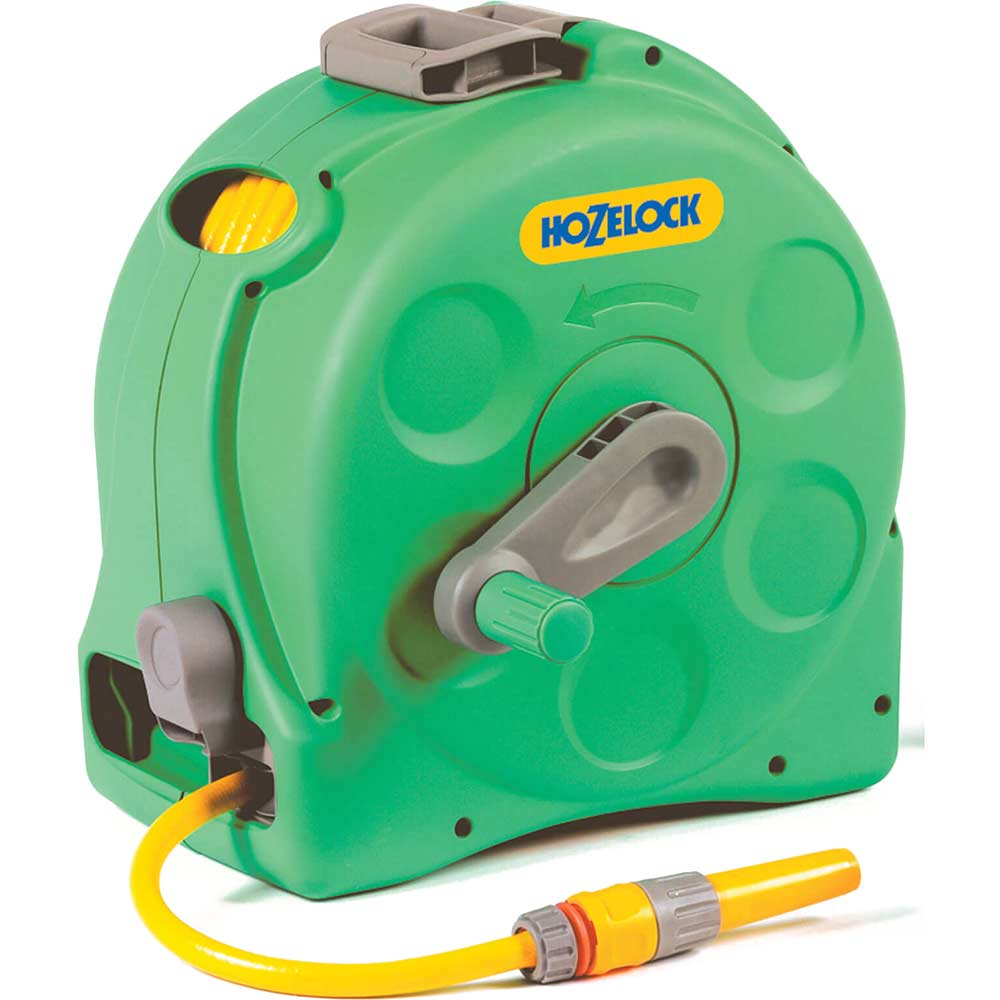 This Hozelock reel holds up to 60m of 12.5mm hose. Highly manoeuvrable & portable, the cart reel is fitted with a 750mm towing handle, coated with soft grip for greater comfort, & large, sturdy wheels. A free standing frame keeps the reel firmly in p...