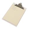Frosted, transparent finish. A4 / Foolscap size for holding A4 paperwork. Manufactured from heavy gauge, shatter resistant polypropylene mix. Includes a hanging hole hook for easy storage. Extra strong, heavy duty clip for holding all of your papers.