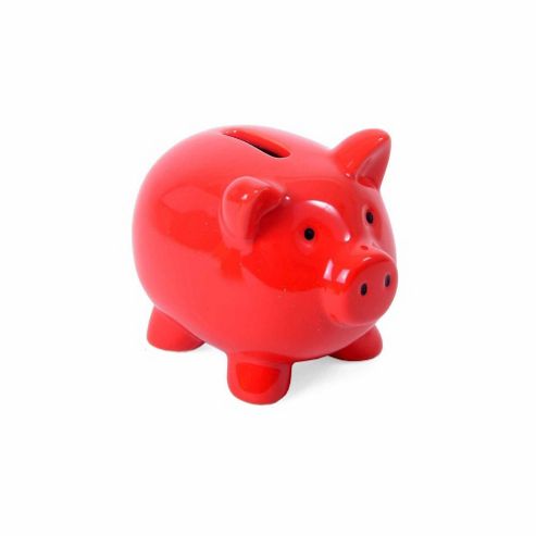 Ceramic piggy bank. A traditional design piggy bank which is a great size for young savers or for those rainy day funds, completed with a bold red coloured glossy finish. An ideal gift idea, 8cm tall x 10cm long x 7cm wide. Secure rubber fastener.