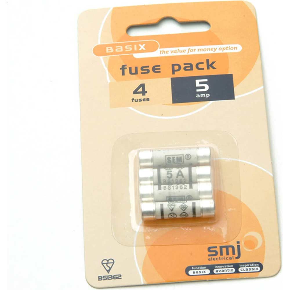 Replacement fuses. 4 fuses per pack. 5 amp fuses (Pack of 4). Suitable for appliances up to 1200 watts. ...