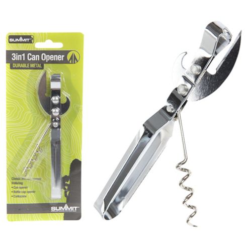Get prepared for the great outdoors with this 3-in-1 functional metal tool. Whether you---re camping, hiking or picnicking, this essential item will open cans, corked bottles and metal top bottles with ease.Lightweight and durable, this Summit utensil measures 14cm.