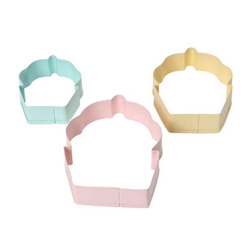 Make gorgeous cupcake shaped cookies with these pastel coloured cookie cutters from Swift. Set of 3 varying in size from 6cm to 9cm high. Made from powder coated tinplate. Rolled edge for comfortable and safe handling. Cutters can be used for baking or...