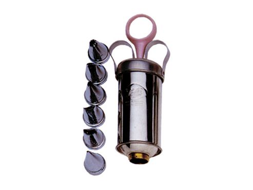 - Contains Syringe, 6 Nozzles And Icing Booklet - Nozzles Are Chrome Plated Brass - Not Dishwasher Safe