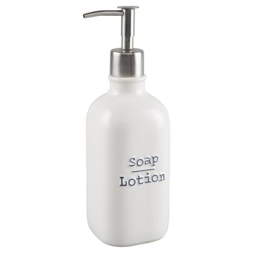 With its classic design and debossed word detail, this attractive soap dispenser adds a lovely touch to your bathroom decor. The soap dispenser is made of ceramic with a plastic pump mechanism and measures H21xDia.7cm in size.Complement the look with...