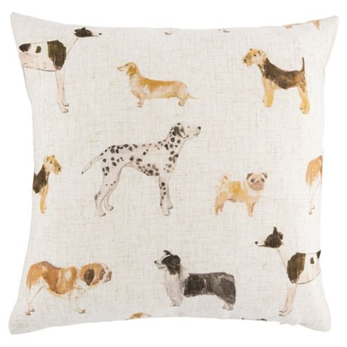 Perfect for dog lovers, this cushion from Tesco is designed and printed in the UK. The cushion is filled with the finest polyester fibre pad with a woven linen blend front and reverse.Suitable for wipe cleaning.