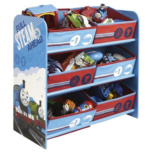 Offering practical storage with a fun Thomas the Tank Engine theme, this Thomas 6 bin storage unit is ideal for a child's bedroom or play room. Designed to inspire your little one to tidy their toys away themselves, the 6 strong fabric toy bins are small enough for a child to lift.At just under 60cm in height for easy reaching, the free-standing Thomas 6 bin storage unit has a sturdy frame with a bright and cheerful printed Thomas design.Self-assembly.